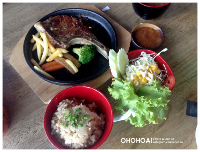จานนี้มาเป็นเซ็ท ประกอบด้วย สเต็กซีโครงหมู ชิ้นใหญ่พอควร รสชาติดี หมูนุ่ม เครื่องเทศซอสถึงเครื่องสเต็ก