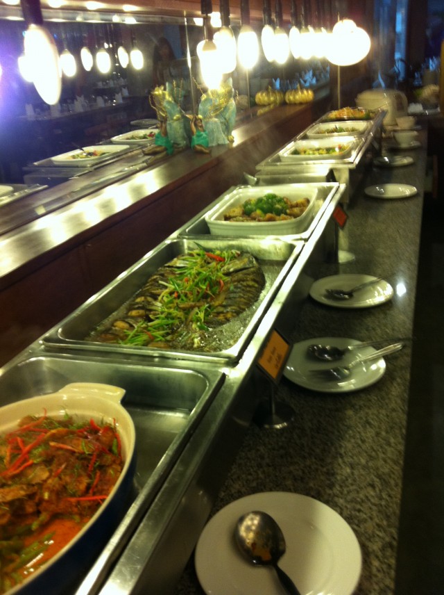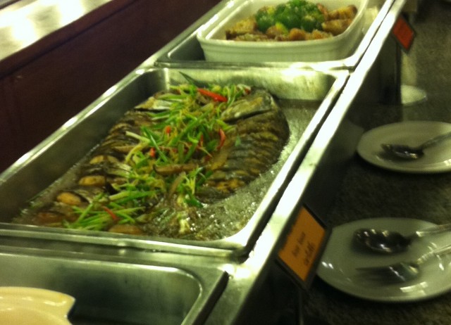 ก็เท่าที่เห็นก็จะมีปลานึ่งซีอิ๋ว (จะตักทั้งตัว แล้วกินหมด เค้าก็คงไม่ว่ามั้ง อิอิ)