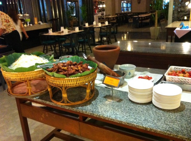 ที่ขาดไม่ได้เลยก็คือส้มตำ ที่นี่จะมีทั้งตำไทยตำปู เราสั่งตำไทยไป รสจัดใช้ได้เลย เพราะที่นี่เค้าก้ตำกันสดๆ เช่นเดียวกัน ชอบเปรี้ยว หวาน เค็ม ขนาดไหน ก็บอกแม่ครัวเค้าได้เลย ส่วนเราชอบรสเผ็ด เปรี้ยว เค็ม สามรส แม่ครัวเค้าก้ทำให้ได้ตามนั้น กุ้งแห้งก็ใส่ให้เยอะ ถั่วก็เยอะ ก็ถ้าจะใส่เพิ่ม ก็ตักใส่จานตัวเองได้เลย แม่ครัวเค้าใจดี อนุญาติ^-^ แต่ส่วนไก่ทอด มันเย็นไปนิดนึงอ่ะ ก็เลยเนื้อแห้งๆ ไม่ค่อยอร่อย เราก็เลยจัดส้มตำไปสองจาน อิอิ