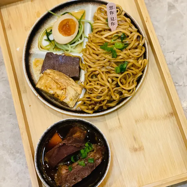 3️⃣ 古早紅燒牛肉拌麵$74: 自家製嘅手工麵,口感比較煙韌~帶有少少麻辣嘅味道👍🏻紅燒牛肉好厚肉,配上素鴨,流心蛋,鴨血,想起台灣了🥺