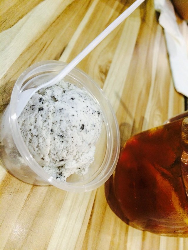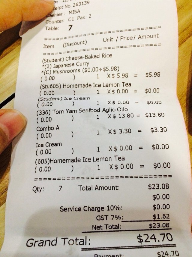 Oglio and wow was it spicy.. She struggled to eat Half the plate of pasta and couldn't even touch the prawns.. It was a waste!!! :( she even skipped the cookies n cream ice cream. They had run out out of soup so it was an ice cream and iced lemon tea combo for a $3.30 top up.